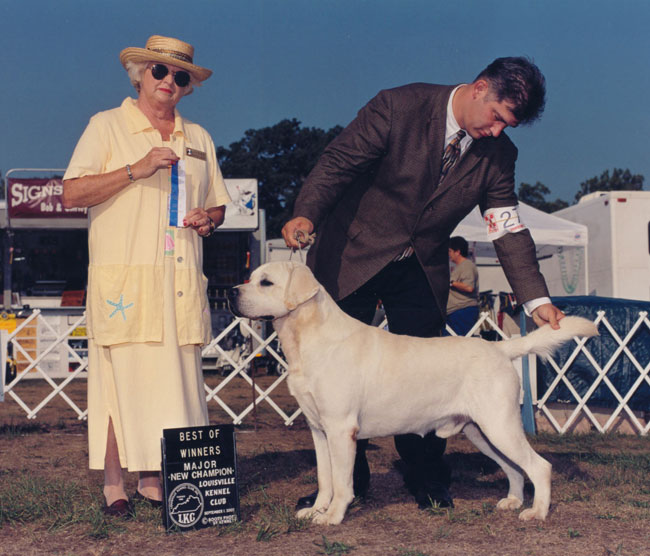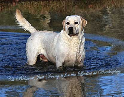 Am Can CH Castlewood's Just Do It, CGCSire: CH Langshott Gale Force From Kimvalley, CD Dam: Ch Castlewoods Catch Me If U Can Sire of Multiple Specialty Winners, Sire of # 1 Labrador Retriever 2006 Finished with 4 majors! Owned by Belquest Kennels